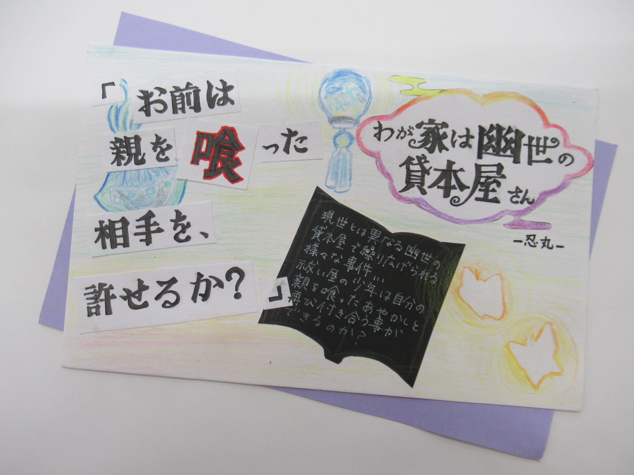 - 審査員コメント:タイトルにぴったりの背景です。コメントも中央に配置されて、整然としていて、とても好感がもてるポップです。文字色も見やすい色で書いてあり、物語の雰囲気を醸しだしているようです。
