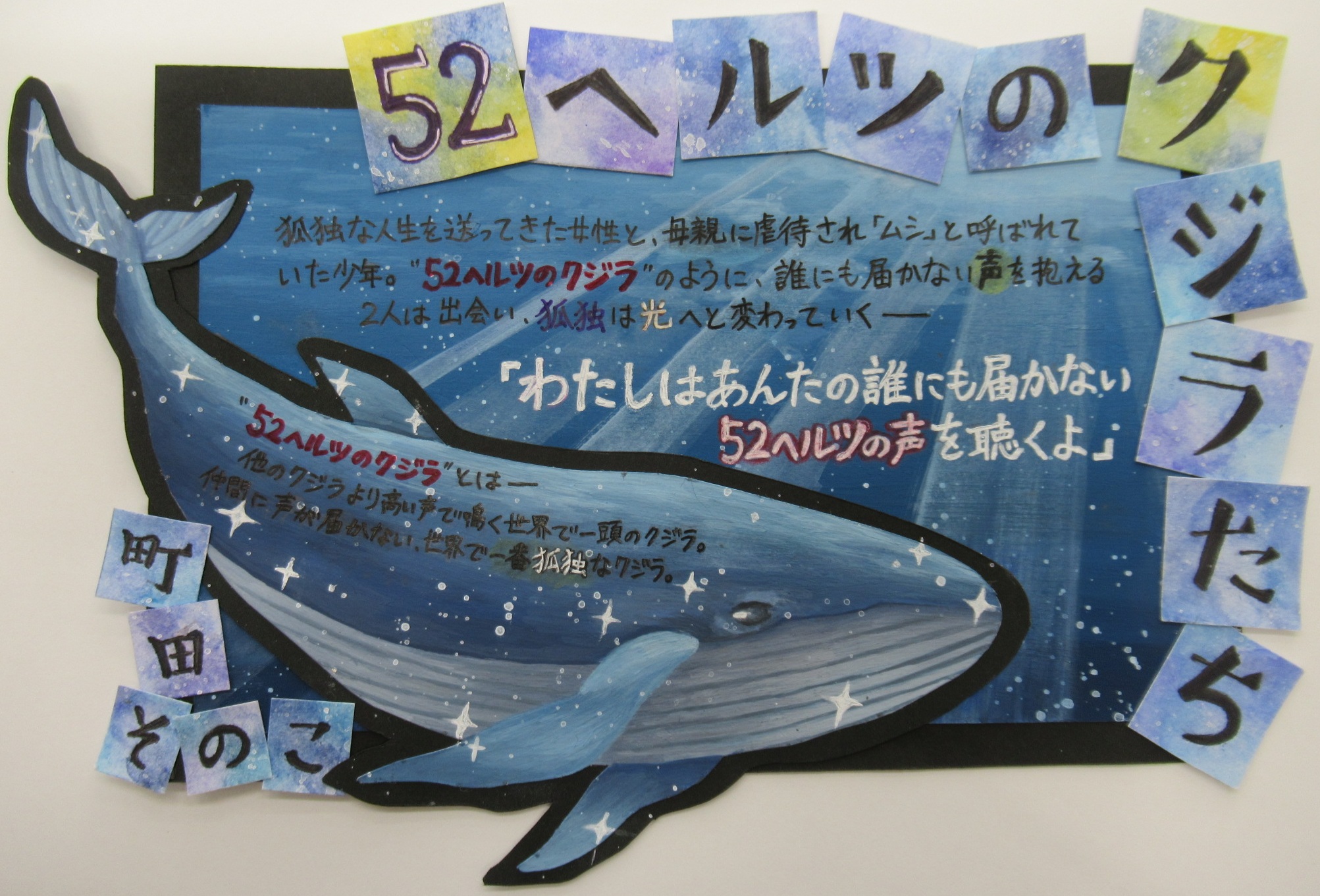 - 審査員コメント:的確なキャッチコピーで文字色にも工夫を凝らしてあります。コメントも簡潔でわかりやすい。クジラのイラストも良いですし、タイトルの文字の配置も良いです。個人的な好みでいえば“一推”の作品です。