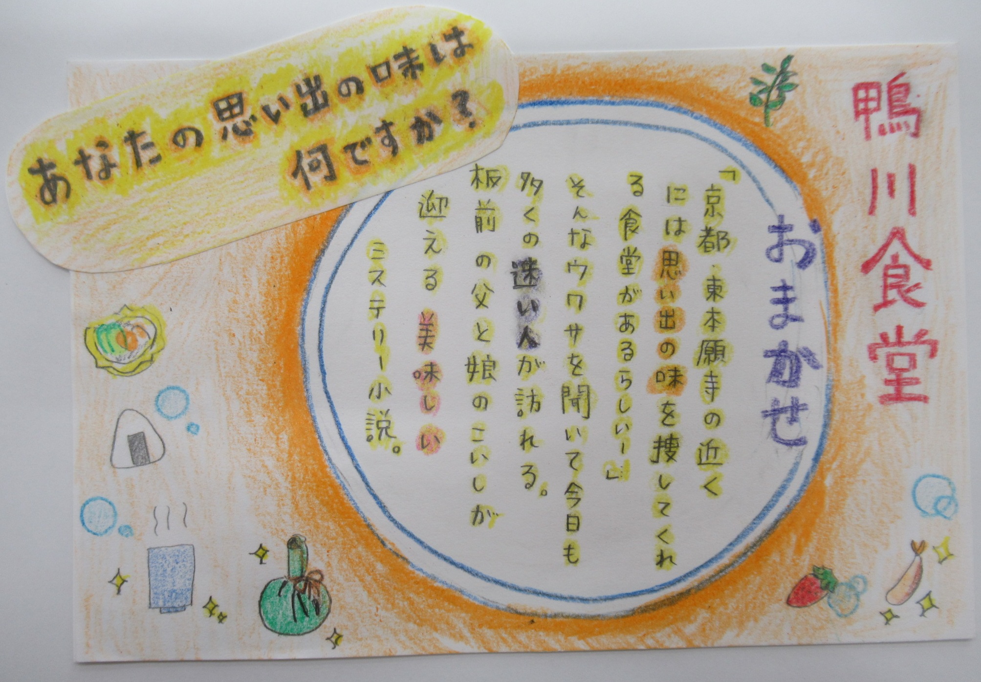 - 審査員コメント:ミステリーではあるけれど、ほっこりと、温かい気持ちで読めることを期待させてくれる、そんな力がこのポップにあります。