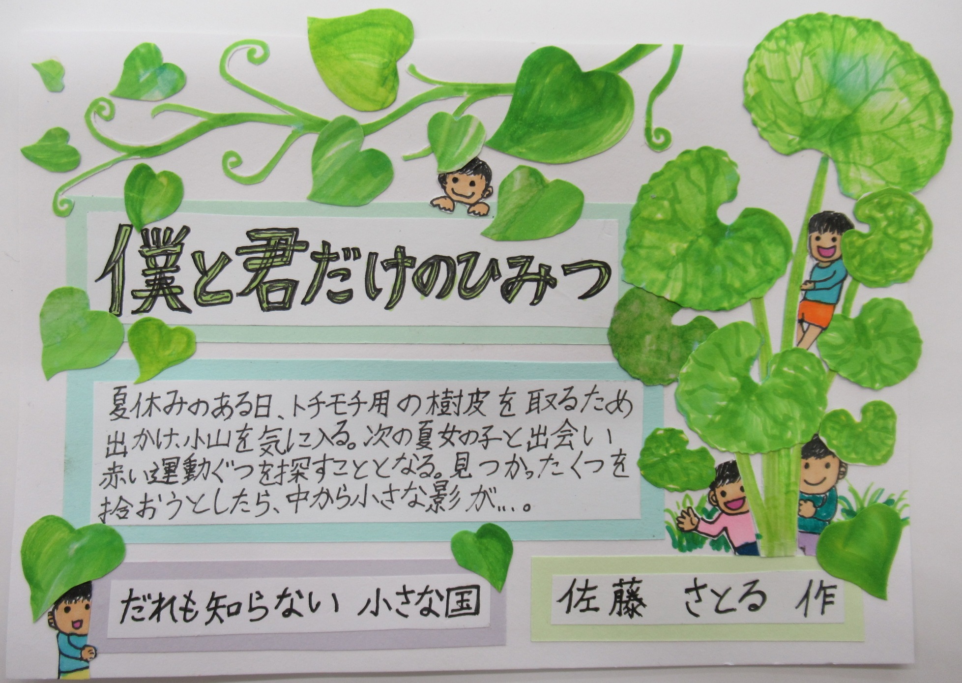 - 審査員コメント:物語の世界へと読者を誘いこむような、ほのぼのとしたイラストがかわいく、「読みたい」気持ちを刺激します。イラストの葉っぱ1枚1枚までていねいにえががれていて、本への愛情を感じます。
