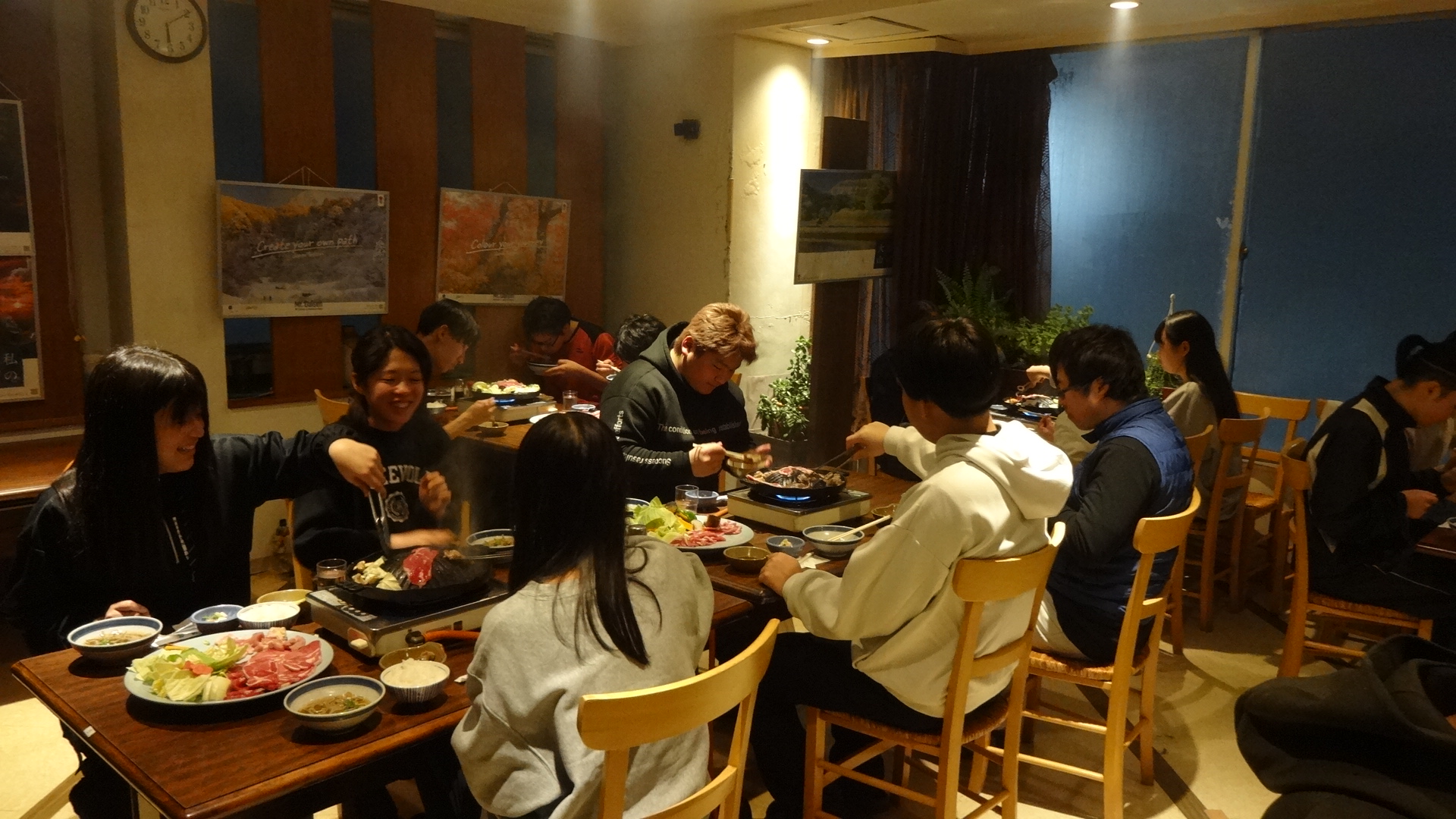1日中、スキー・スノーボードを満喫した後は楽しい夕食の時間です。