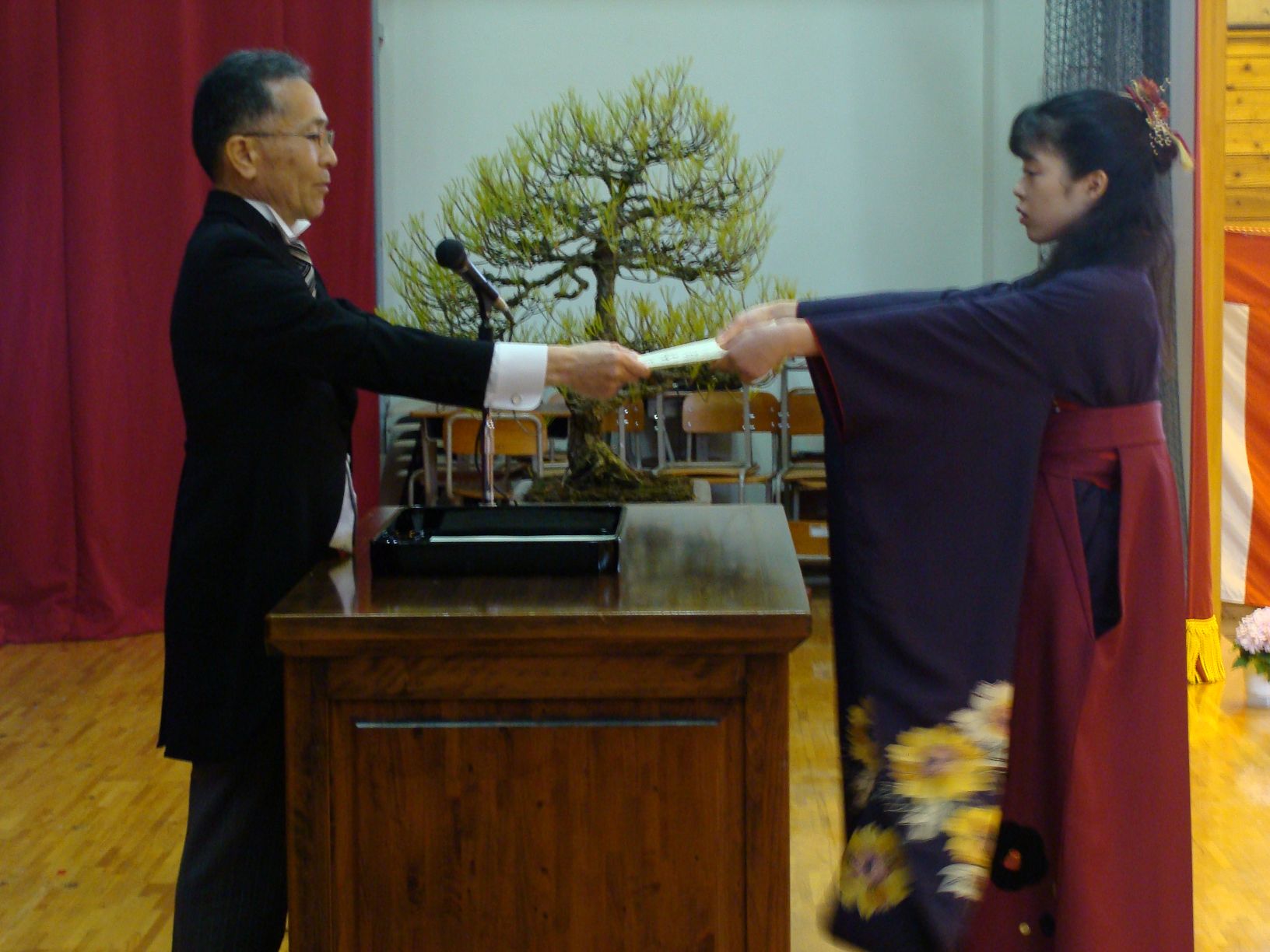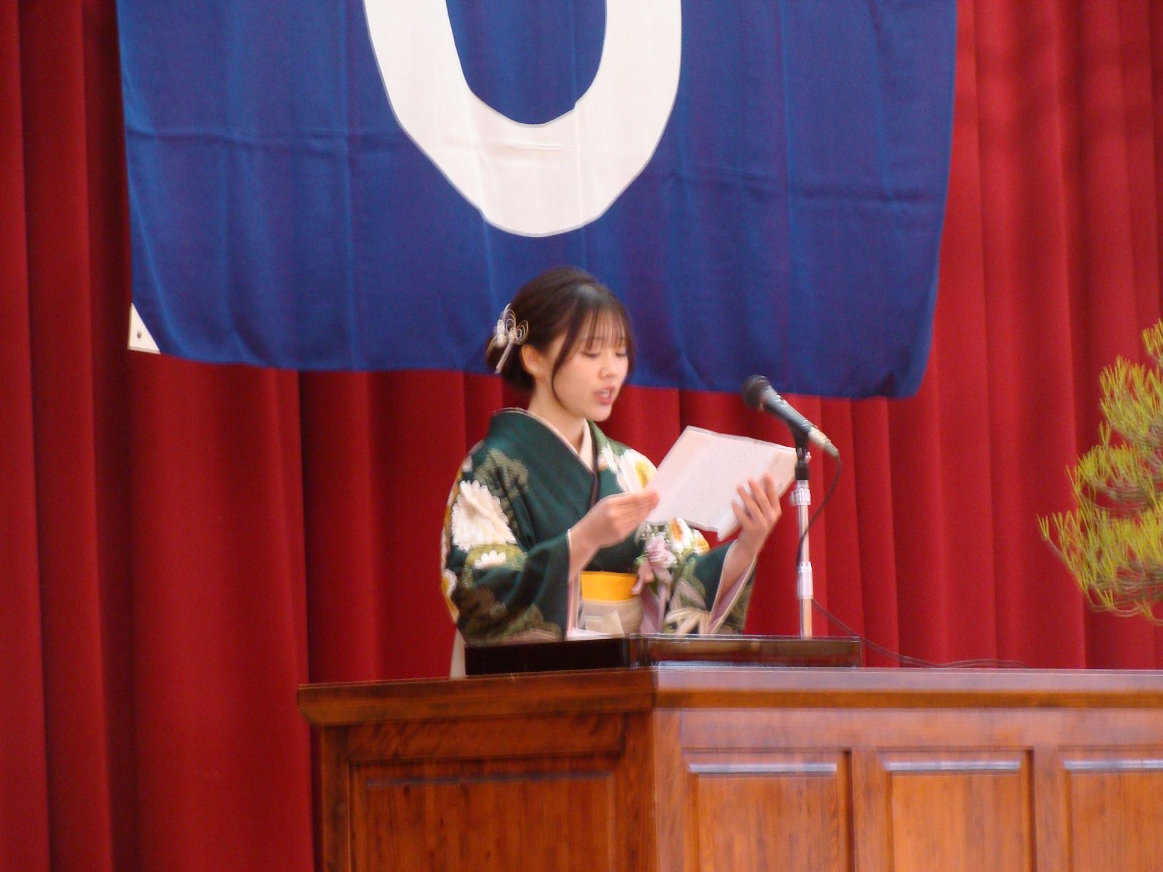 その後、在校生を代表して1年生の井上辰彦さんが送辞を行い、卒業生代表の伊藤真央さんが答辞を行いました。