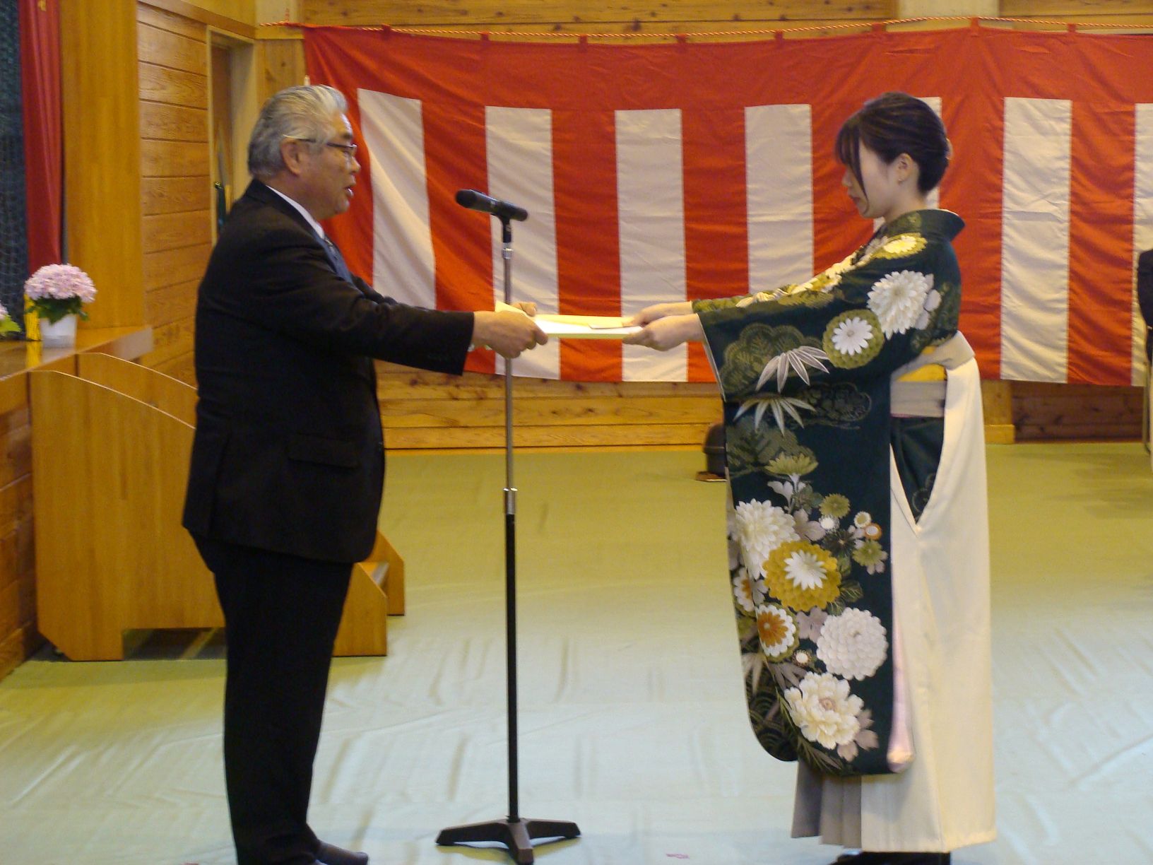 卒業式終了後、学業成績が優秀で学生会活動及び学校生活で模範となった学生が、小林校長先生と修農会の横川会長から表彰(下表のとおり)されました。
